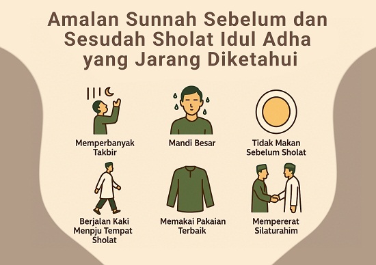 Selain mandi, amalan sunnah pada ritual tahunan ini adalah mengumandangkan takbir mulai masuknya waktu maghrib malam ke-10 Dzulhijjah. Pandangan ini disampaikan Imam Nawawi dalam salah satu kitab fiqihnya, Raudhatut Thalibin. “Disunahkan mengumandangkan takbir pada malam hari raya mulai terbenamnya matahari, dan sangat disunahkan juga menghidupkan malam hari raya tersebut dengan beribadah,” tulis Ustadz Fuad H Basya dalam artikel berjudul Enam Amalan Sunnah di Idul Adha, dikutip pada Kamis (5/6/2025).