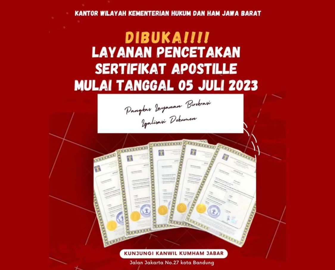 Dalam hal tersebut, Kanwil Kemenkumham jabar sebagai dari 7 kanwil yang bisa mencetak apostille.