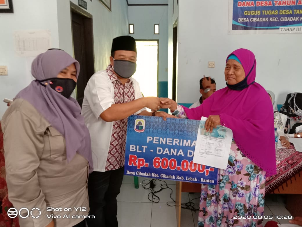 BLT Dana Desa Cibadak dibagikan kepada  61 orang kepala keluarga yang terdampak covid 19. Setiap kepala keluarga menerima bantuan sebesar Enam Ratus Ribu Rupiah (Rp 600,000-).