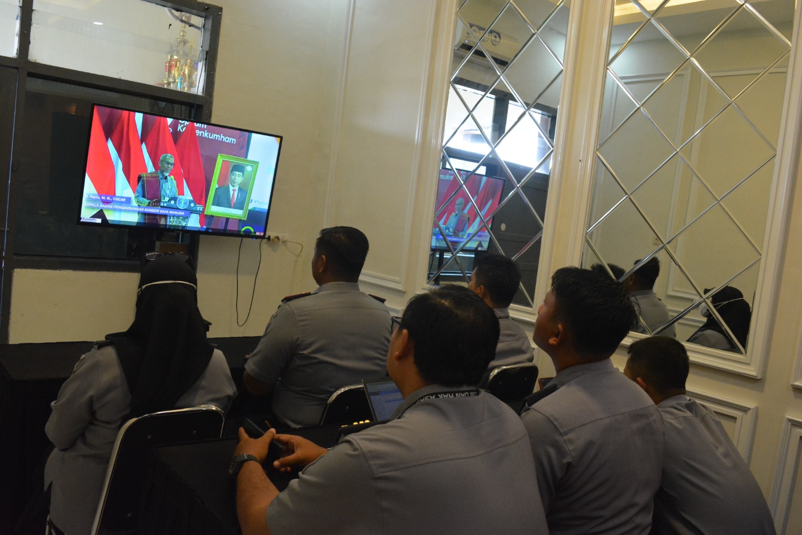 PASURUAN – Senin (05/08/2024) Seluruh petugas Rutan Bangil turut serta mengikuti peluncuran webinar series bertemakan “Cerdas Bersama BPSDM Hukum dan HAM” yang diselenggarakan secara virtual melalui Zoom dan disiarkan langsung di YouTube. Acara ini menghadirkan Menteri Hukum dan HAM RI, Yasonna H. Laoly, sebagai narasumber utama. Webinar ini bertujuan untuk meningkatkan pengetahuan dan keterampilan petugas di lingkungan Kementerian Hukum dan HAM melalui berbagai topik yang relevan dengan tugas dan tanggung jawab mereka.