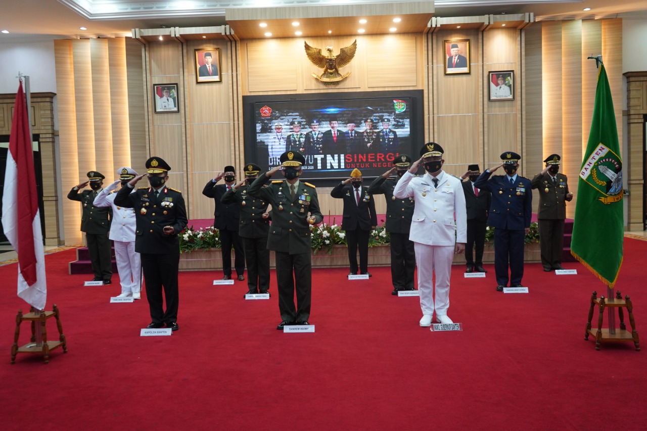 BANTEN – Berbeda dengan tahun-tahun sebelumnya, di tengah pandemi Covid-19, acara Peringatan HUT Ke-75 TNI dilaksanakan secara virtual yang dipusatkan di Istana Negara Jakarta. Sedangkan untuk Korem 064/MY menyelenggarakan upacara peringatan HUT TNI secara virtual di Pendopo Gubernur Banten, Senin (05/10/2020).