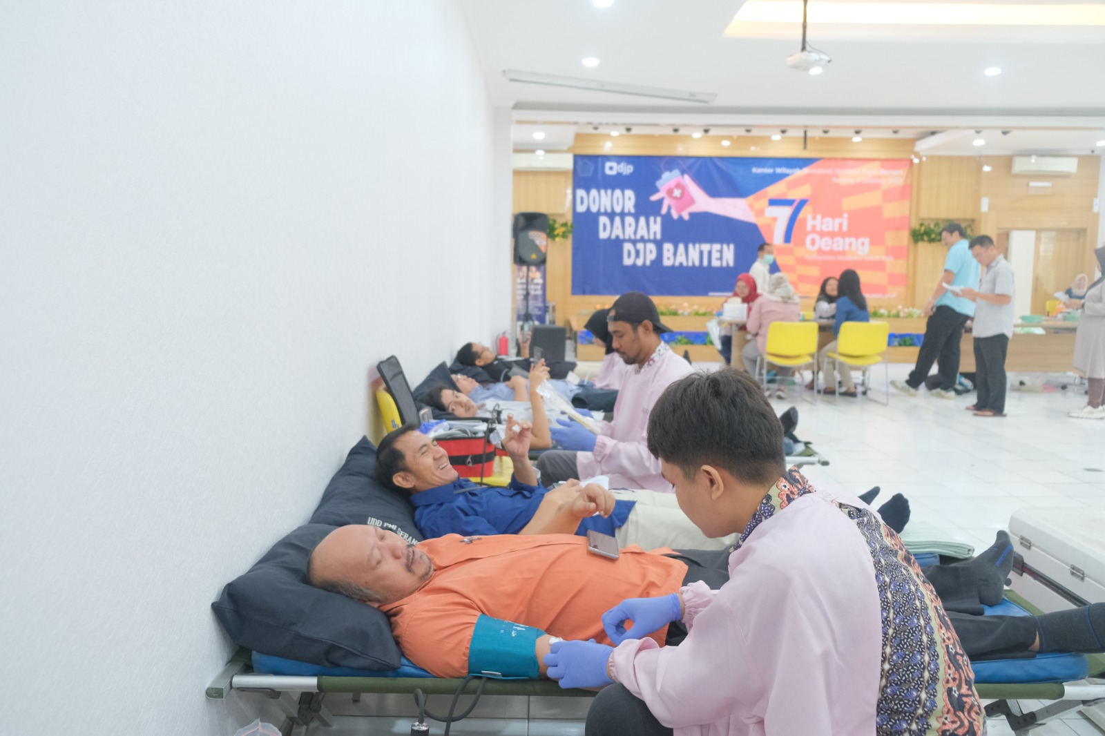 SERANG – Kantor Wilayah Direktorat Jenderal Pajak (Kanwil DJP) Banten mengadakan kegiatan donor darah dalam rangka memperingati Hari Oeang Republik Indonesia ke 77. Donor darah dilaksanakan di Aula Krakatau Kanwil DJP Banten, Jalan Jenderal Sudirman Nomor 34, Sumurpecung, Serang, Banten (Kamis, 5/10).
