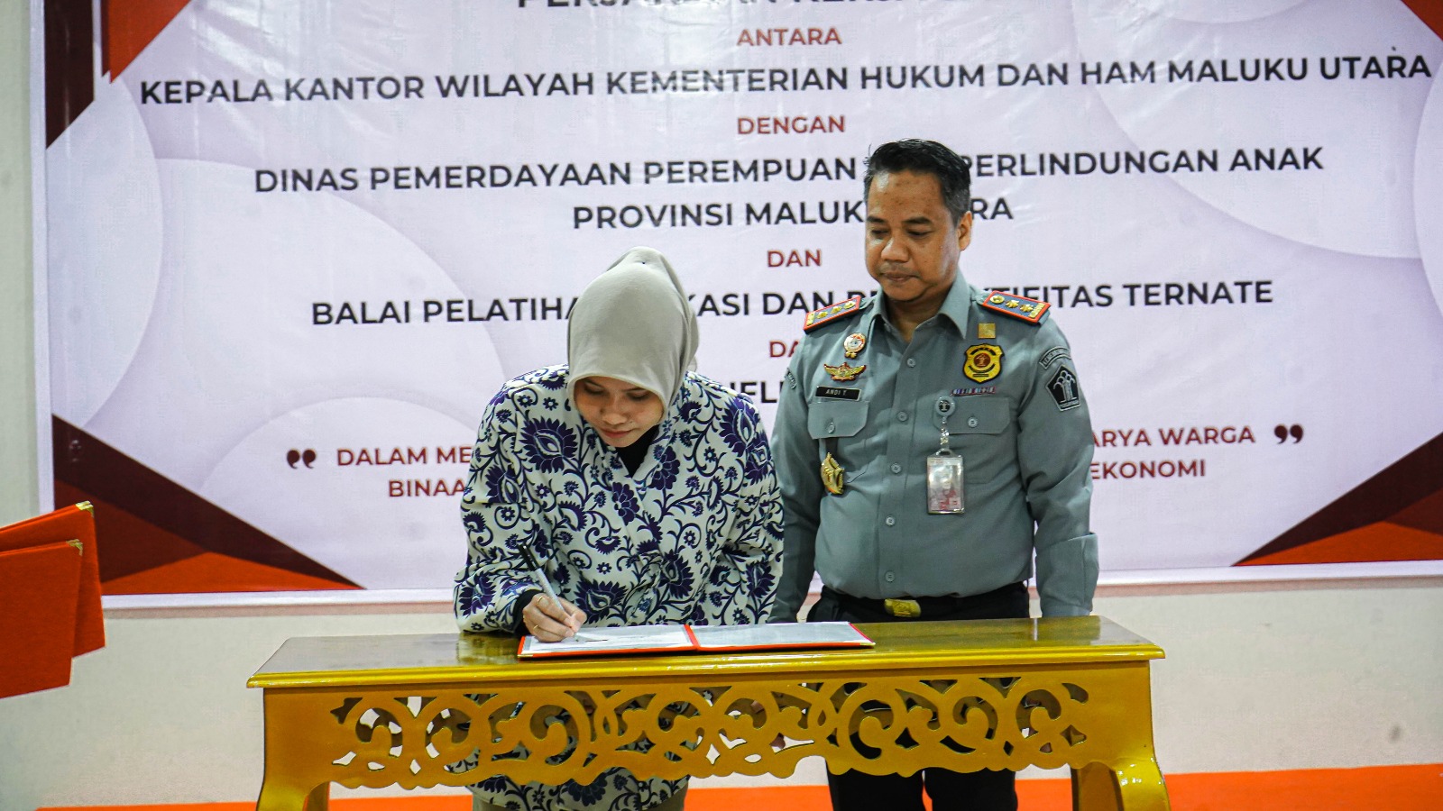 Untuk diketahui, penandatanganan kerja sama dengan Dinas PPPA Provinsi Malut dan BPVP Ternate serta influencer turut disaksikan oleh Kepala UPT Pemasyarakatan dalam Kota Ternate. tampak hadir menyaksikan penandatanganan, Kadiv Administrasi, Slamet Pramoedji, Kadiv Pemasyarakatan, Hensah, dan Kadiv Keimigrasian, Ian F Markos.