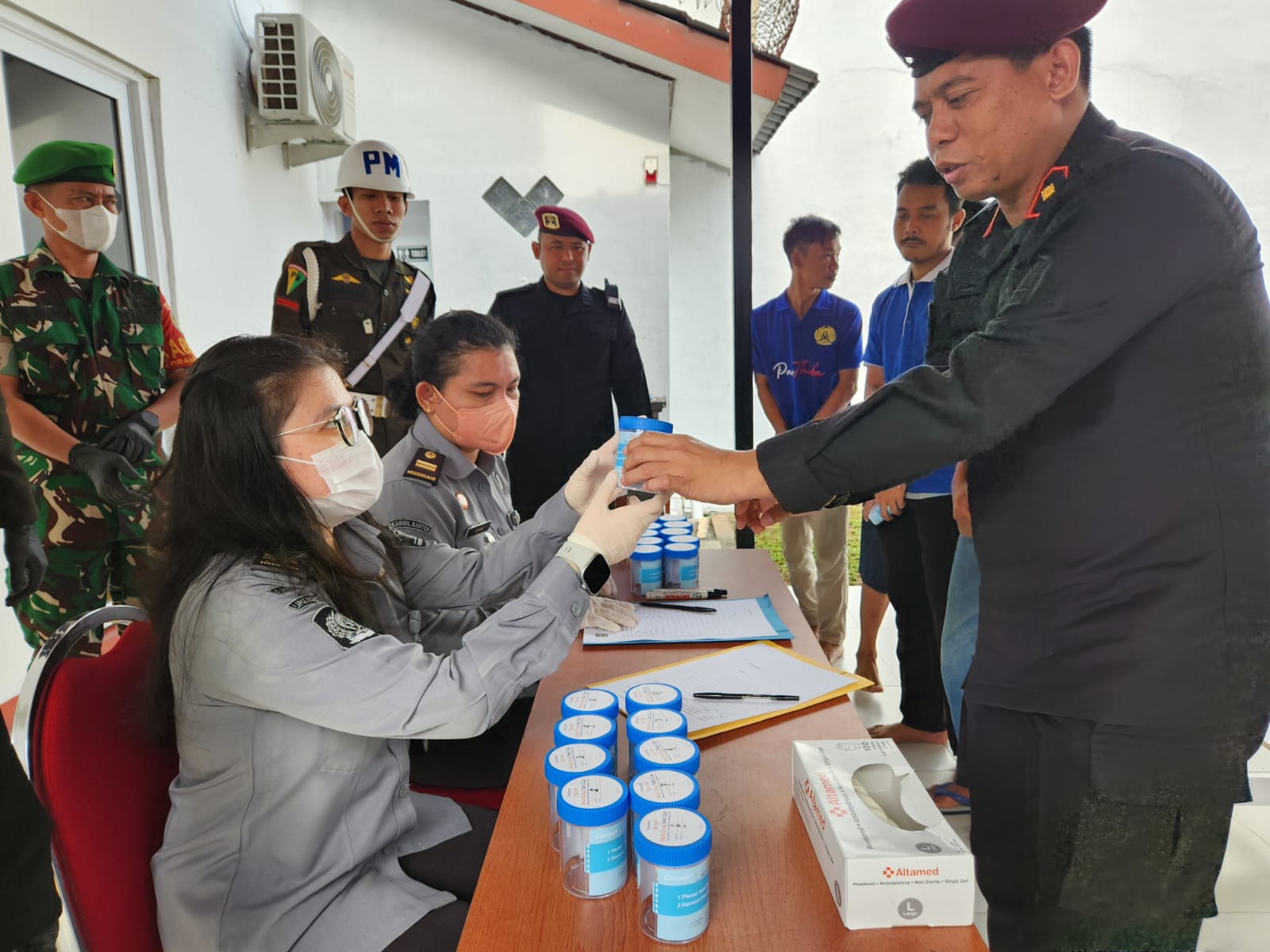 Rangkasbitung – Dalam rangka memberantas peredaran dan penyalahgunaan Narkoba serta implementasi rencana aksi 100 hari kerja Menteri Imigrasi dan Pemasyarakatan, Lapas kelas III Rangkasbitung mengadakan tes urin bagi pegawai dan Warga Binaan Pemasyarakatan (WBP), kegiatan ini juga bertujuan untuk memastikan lingkungan Lapas Rangkasbitung bebas dari narkoba, Selasa (05/11)