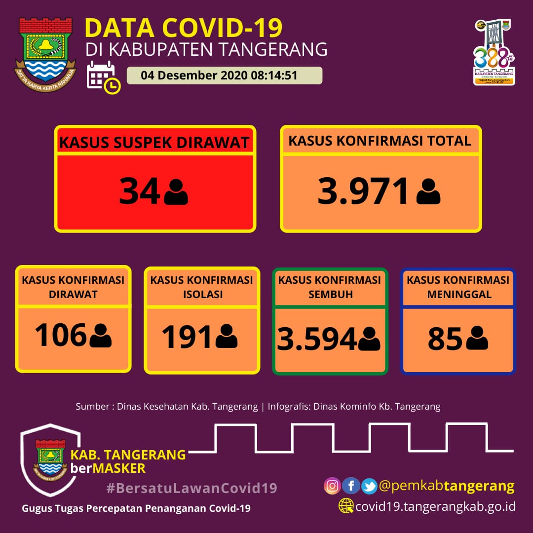 Dalam beberapa hari terakhir kasus persebaran Covid-19 di Kabupaten Tangerang masih mengalami peningkatan. peningkatan ini terlihat secara drastis pada Jumat kemarin (4/12/20)