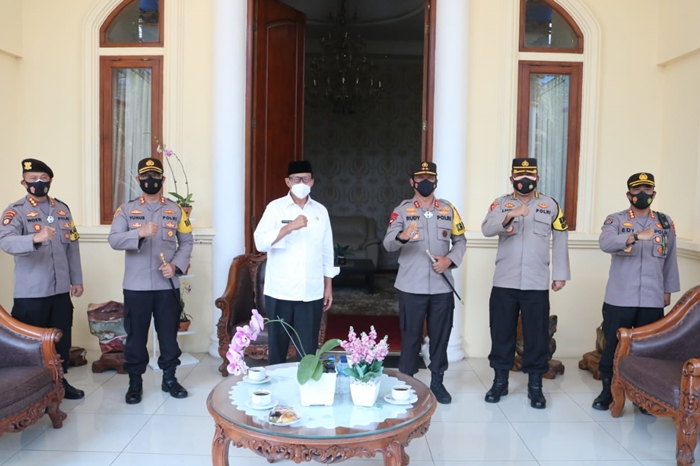 Sementara itu Kapolda Banten menyampaikan “Kami dari Polda Banten dalam rangka safari kamtibmas serta berkoordinasi terkait dengan sinergitas kemitraan Polri terhadap Forkompimda dan khususnya dalam penanggulangan virus Covid-19 serta sekaligus ingin menjalin silaturahmi dan mengucapkan terima kasih telah membantu Polda Banten selama ini,” kata Rudy Heriyanto.