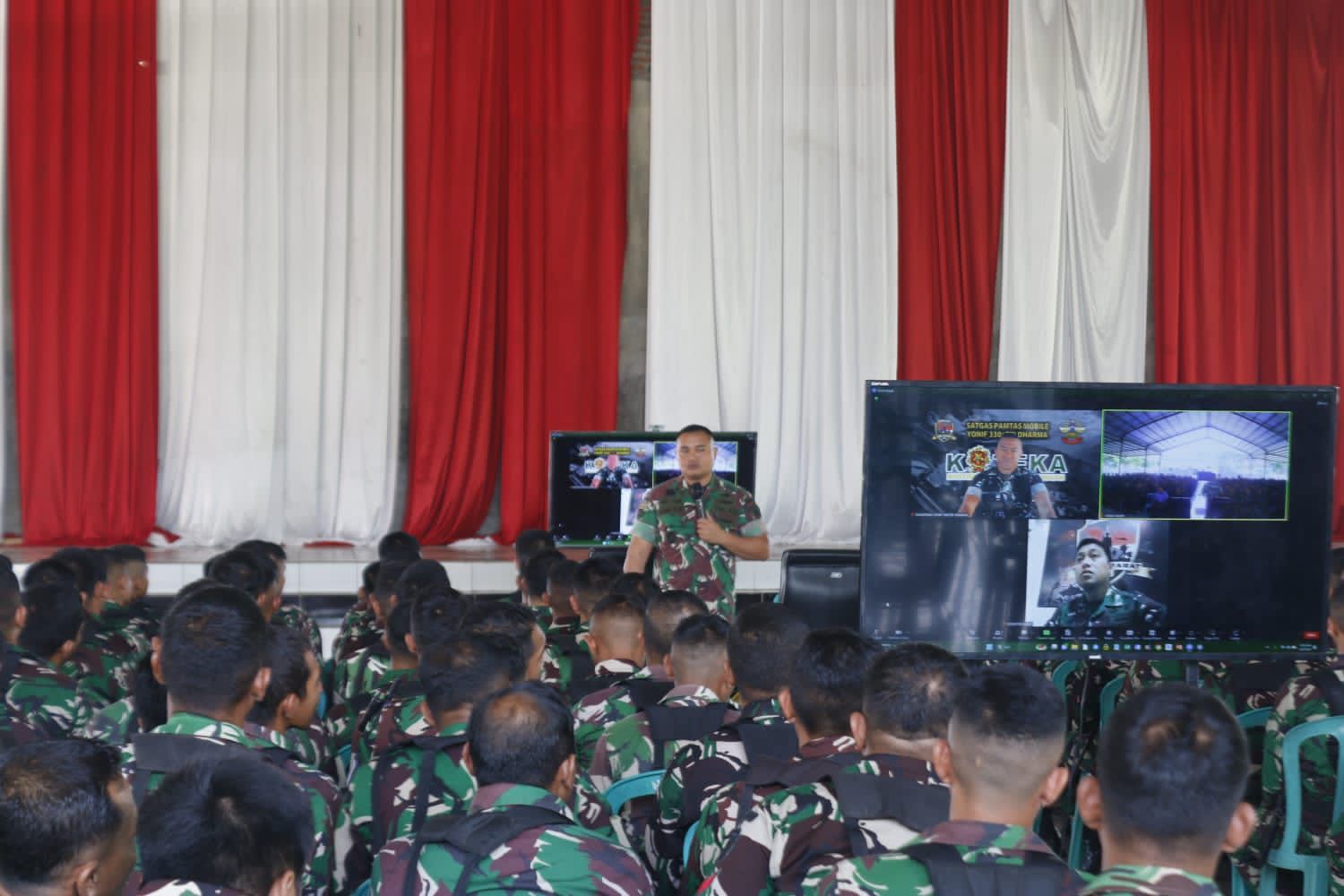 SIBERINDO.CO – Danyonif 330 Tri Dharma, Mayor Inf Dedy Pungky Irawanto, S.I.P., M.I.Pol memberikan pembekalan melalui sarana video conference kepada 450 prajurit Yonif 509/Balawara Yudha yang akan melaksanakan misi mulia yaitu Satgas Pamtas Mobile RI – PNG Tahun 2024 di wilayah Intan Jaya , pada Senin (5/2/24).