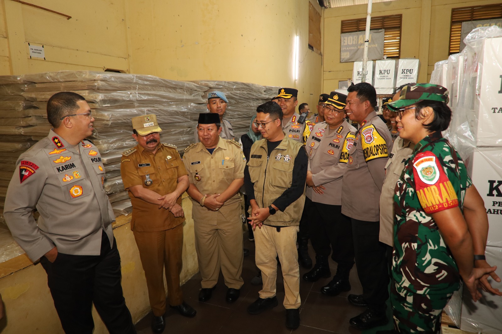 SERANG – Kapolda Banten Irjen Pol Abdul Karim laksanakan pengecekan Gudang Logistik Pemilu 2024 PPK Kecamatan Banjarsari yang berlokasi di GOR Banjarsari Kota Serang pada Senin (06/02).
