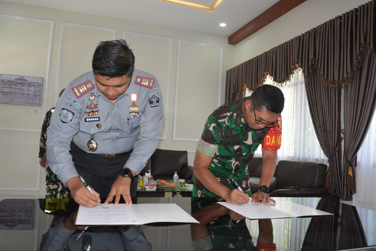 SIBERINDO.CO – Selasa (06/02/2024) Pada sebuah hari yang penting di Rutan Bangil, suasana haru dan semangat kebangsaan menyelimuti ruang kepala rutan. Kepala Rutan Bangil, Bhanad Shofa Kurniawan dengan penuh kebanggaan dan tanggung jawab, melaksanakan penandatanganan Memorandum of Understanding (MOU) Bela Negara dengan Komandan Komando Distrik Militer 0819 Pasuruan. Kehadiran langsung Komandan KODIM 0819 Pasuruan dan Komandan Koramil Bangil, beserta jajaran, memberikan nuansa kehormatan dan kekuatan pada acara tersebut.
