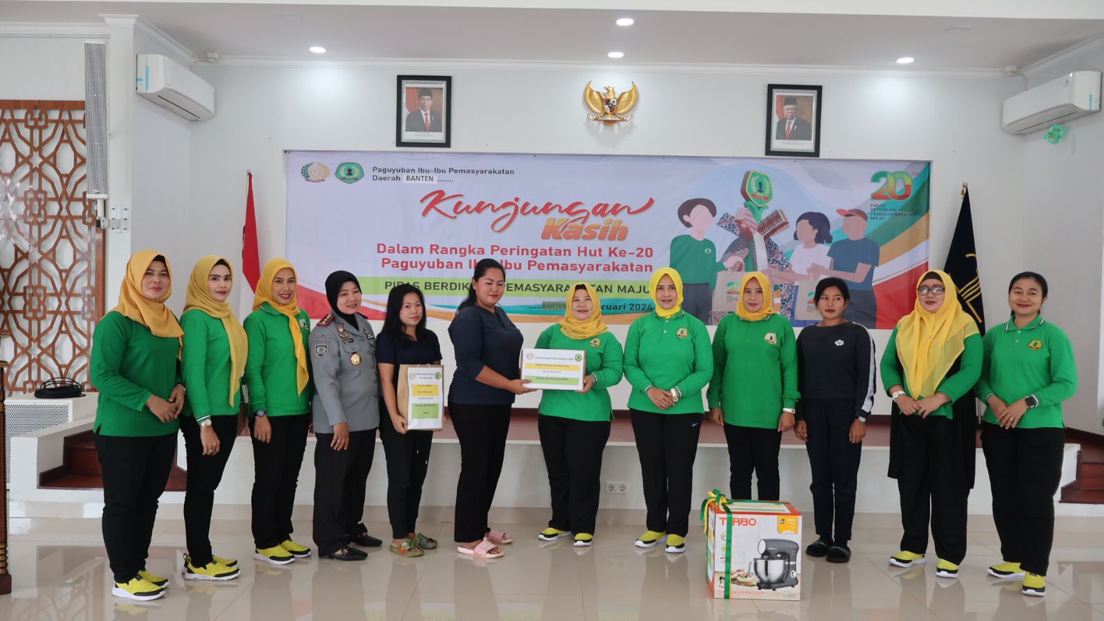 Tangerang, (06/02). Hari Ulang Tahun ke-20 Paguyuban Ibu-Ibu Pemasyarakatan (PIPAS) dirayakan dengan kegiatan Kunjungan Kasih. PIPAS Banten melaksanakan kunjungan kasih ke Lembaga Pemasyarakatan Perempuan Kelas IIA Tangerang. Kegiatan tersebut dipimpin oleh Penasihat PIPAS Banten, Ibu Lucky Dodot Adikuswanto.