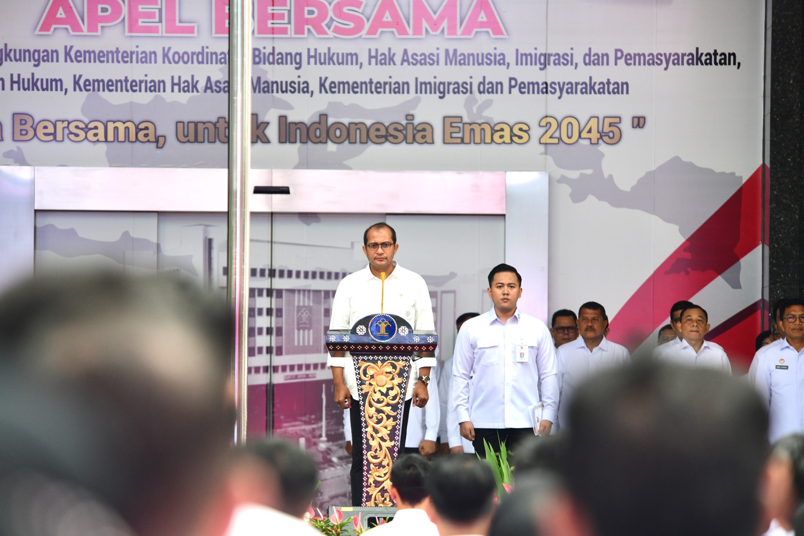 Sebelumnya, Wakil Menteri Hukum (Wamenkum), Edward Omar Sharif Hiariej, mengajak seluruh pimpinan dan pegawai Kementerian Koordinator Bidang Hukum, HAM, Imigrasi dan Pemasyarakatan, Kementerian Hukum, Kementerian HAM serta Kementerian Imigrasi dan Pemasyarakatan untuk melihat efisiensi anggaran yang saat ini terjadi, sebagai peluang guna mengembangkan dan meningkatkan kapasitas diri dengan memaksimalkan sumber daya yang ada.