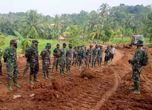 LEBAK – Pelaksanaan TNI Manunggal Membangun Desa (TMMD) Ke 110 Kodim 0603/Lebak, di Kecamatan Cimarga, Kabupaten Lebak, Banten sudah memasuki hari ke empat dan mencapai 70 persen dikerjakan. Sabtu, (6/3/2021).