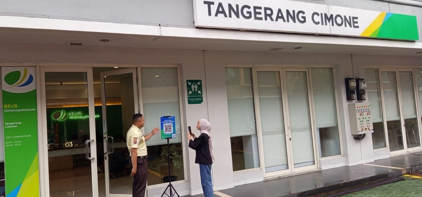 TANGERANG – Dalam rangka optimalisasi kualitas layanan, BPJS Ketenagakerjaan Cabang Tangerang Cimone menggunakan QR Code guna untuk melakukan antrian online.