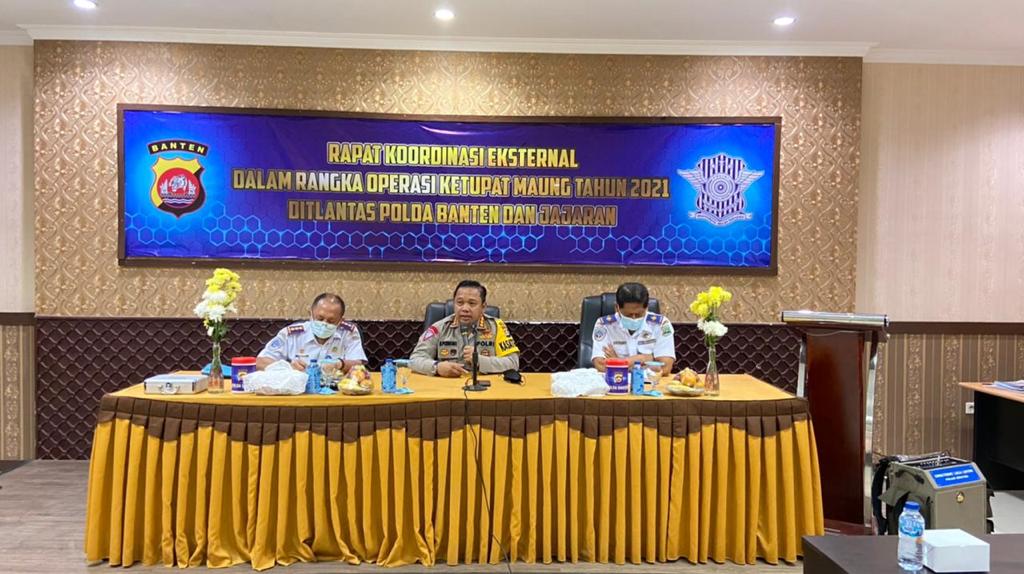KOTA SERANG – Dalam rangka pengamanan mudik lebaran 2021, Ditlantas Polda Banten gelar rapat koordinasi lintas instansi.