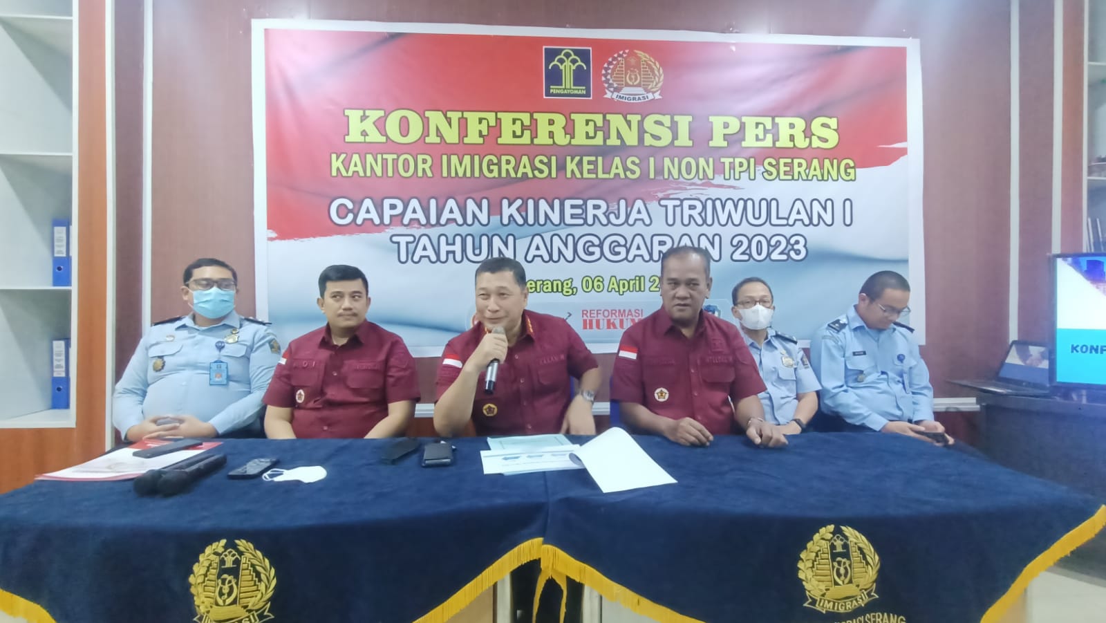 SERANG – Kantor Imigrasi Kelas I Non TPI Serang gelar konferensi pers terkait capaian kinerja triwulan I tahun anggaran 2023. Kamis, (06/04).