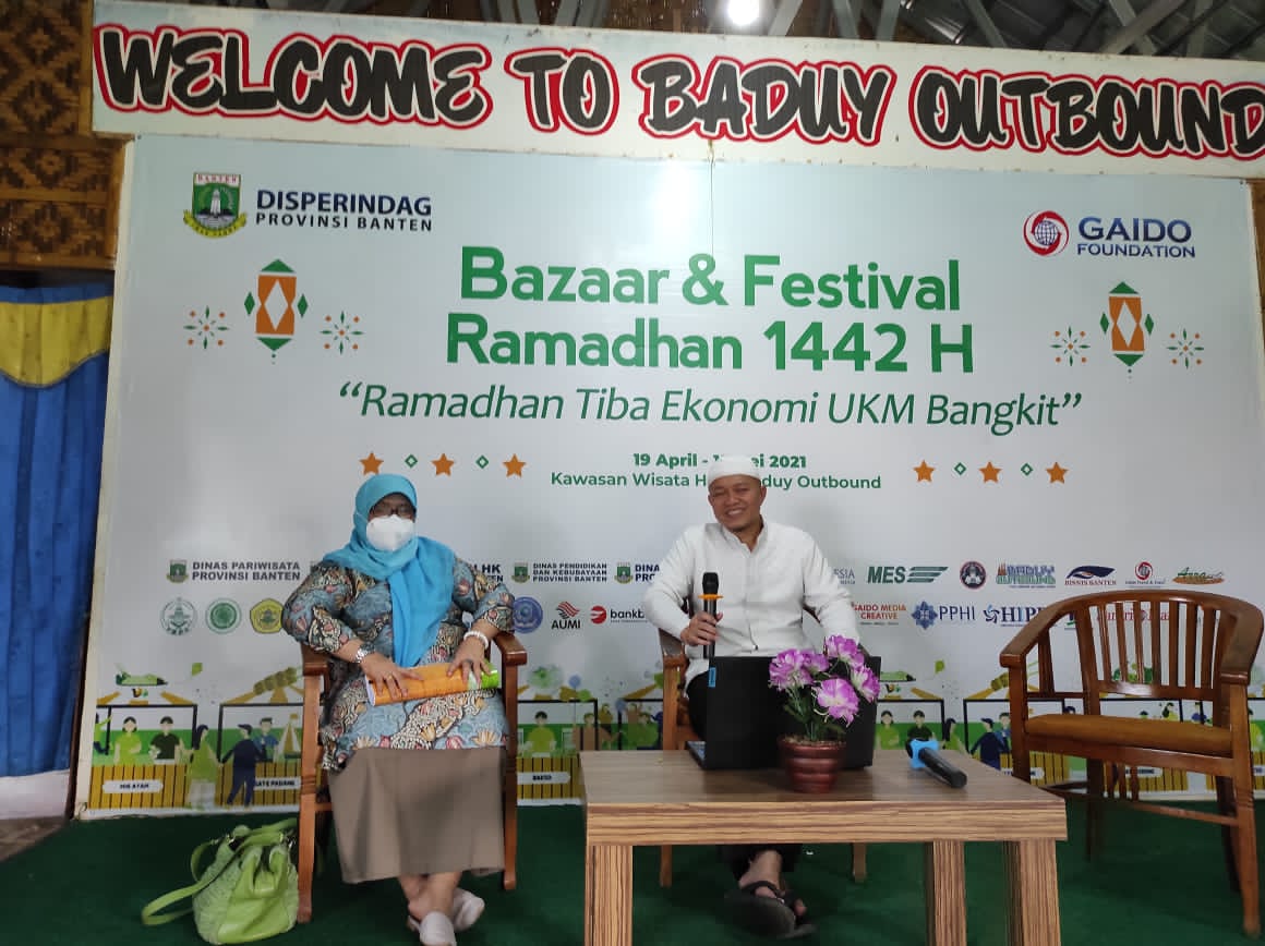 Banten,(persepsi.co.id)- Ramadhan Tiba Ekonomi UKM Bangkit memasuki hari ke-17. Kali ini di isi dengan kegiatan dialog bertema “Menjawab tantangan Kampus Merdeka” dengan menghadirkan narasumber Dra. Hj Nihayatul Maskuroh M.Si., Dekan Fakultas Ekonomi Bisnis Islam (FEBI) Universitas Islam Negeri (UIN) Sultan Maulana Hasanuddin Banten dan dimoderatori oleh Muhammad Hasan Gaido, founder Gaido Foundation, pada Rabu (05/05) di Aula Serbaguna Kawasann Wisata Halal Baduy Outbound.
