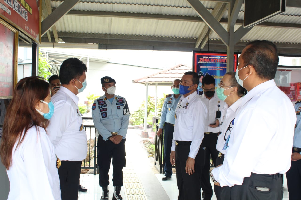 KOTA SERANG – Inspektur Wilayah I Ahmad Rifa’i dan Inspektur Wilayah II Icon Siregar dari Kementerian Hukum dan HAM (Kemenkumham) RI mengunjungi Lembaga Pemasyarakatan Kelas IIA Serang.