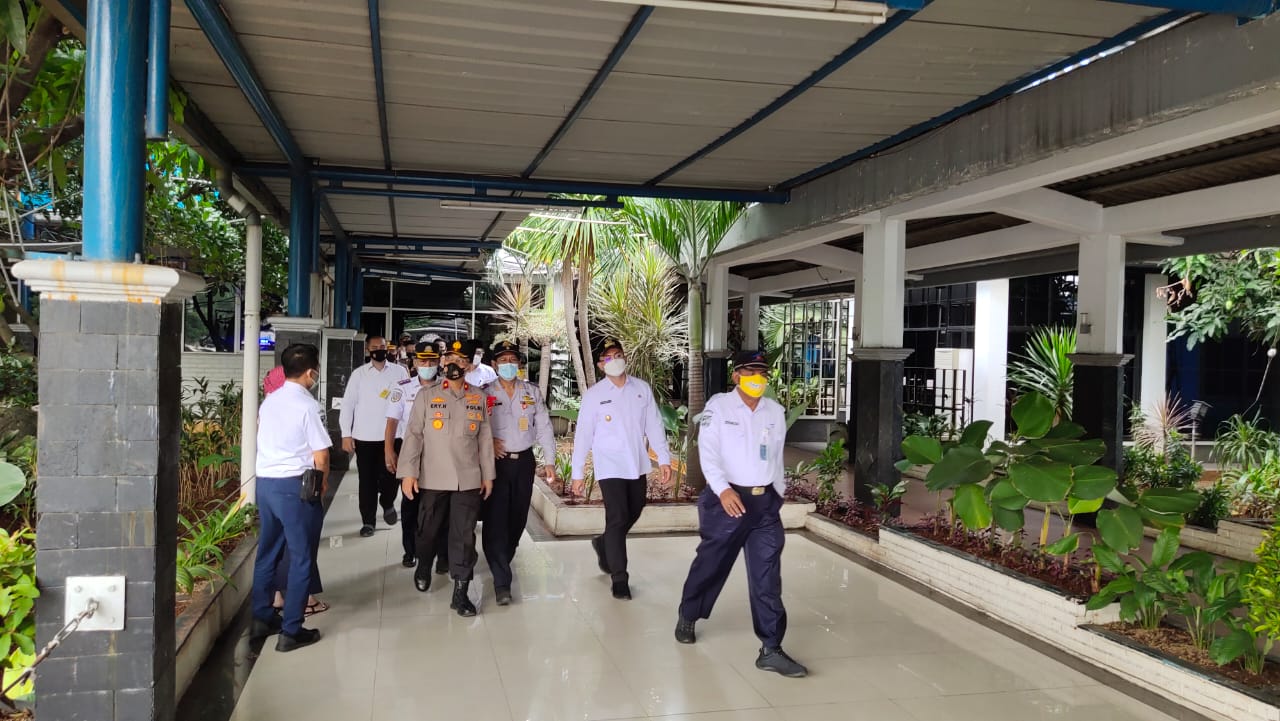 CILEGON – Kapolres Cilegon beserta pejabat utama mendampingi Wakil Gubernur Banten dan Wakapolda Banten saat melaksanakan pengecekan pos pengamanan (Pospam) dan penyekatan (Pos Sekat) yang ada di daerah hukum Polres Cilegon, Rabu, (5/5/2021).