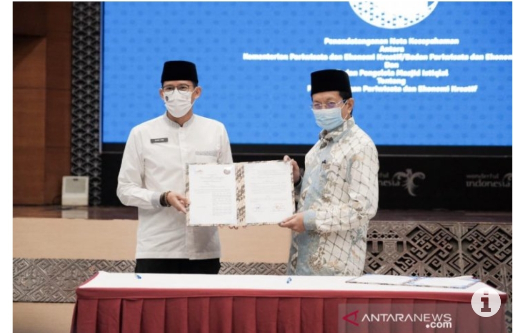 Kerja sama ditandai dengan penandatanganan Nota Kesepahaman (MoU) antara Menteri Pariwisata dan Ekonomi Kreatif/Kepala Badan Pariwisata dan Ekonomi Kreatif Sandiaga Salahuddin Uno bersama Imam Besar Masjid Istiqlal KH. Nasaruddin Umar.