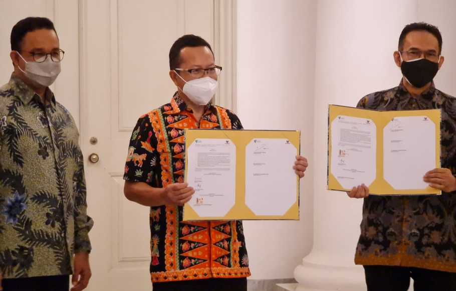Kerja sama tersebut di tandatangani Ketua Yayasan Dompet Dhuafa Nasyith Majidi dan Wakil Ketua Baznas BAZIS DKI Saat Suharto Amjad disaksikan Gubernur DKI Jakarta Anies Baswedan, di Balai Kota DKI Jakarta, Kamis (5/8/2021).