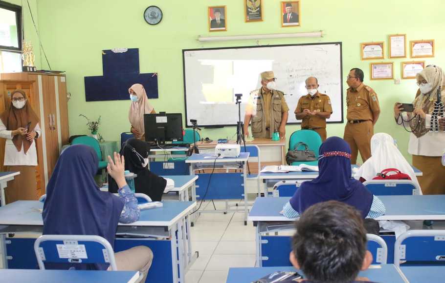 Inayatullah meninjau pelaksanaan PTM terbatas di SMPN 2 Kota Bekasi tadi pagi. “PTM terbatas di SMPN 2 terdapat satu sesi mulai dari pukul 07.00-12.00 WIB dengan jumlah 9 kelas,” katanya.