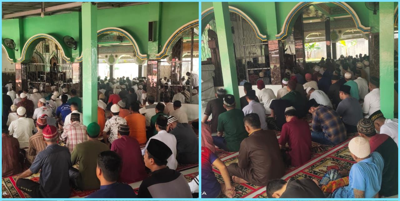 PALEMBANG – Petugas dan Warga Binaan Lapas Kelas I Palembang melaksanakan Shalat jumat berjamaah di Masjid at-taubah Lapas Kelas I Palembang.