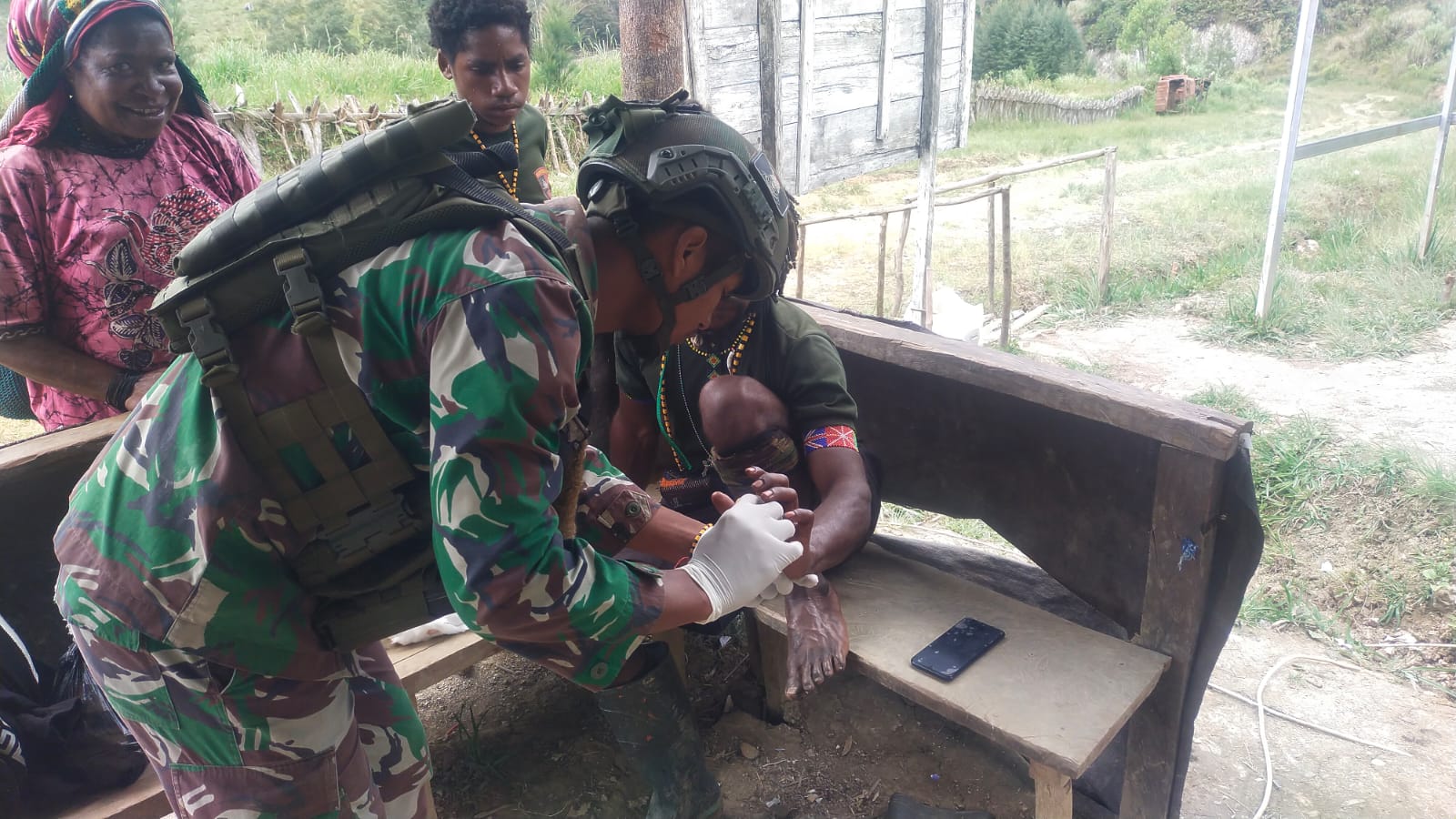 Beruntung saat melaksanakan patroli tersebut, turut serta personel Kesehatan Satgas Yonif 323 Kostrad dalam Tim Patroli. Melihat kondisi Melkiaw, personel Kesehatan dengan sigap langsung memeriksa dan mengobati luka tangannya. Selesai pertolongan pertama dilakukan, personel Kesehatan menyerahkan obat secara cuma-cuma kepada Melkiaw untuk dikonsumsi selama beberapa hari kedepan guna kesembuhan lukanya.