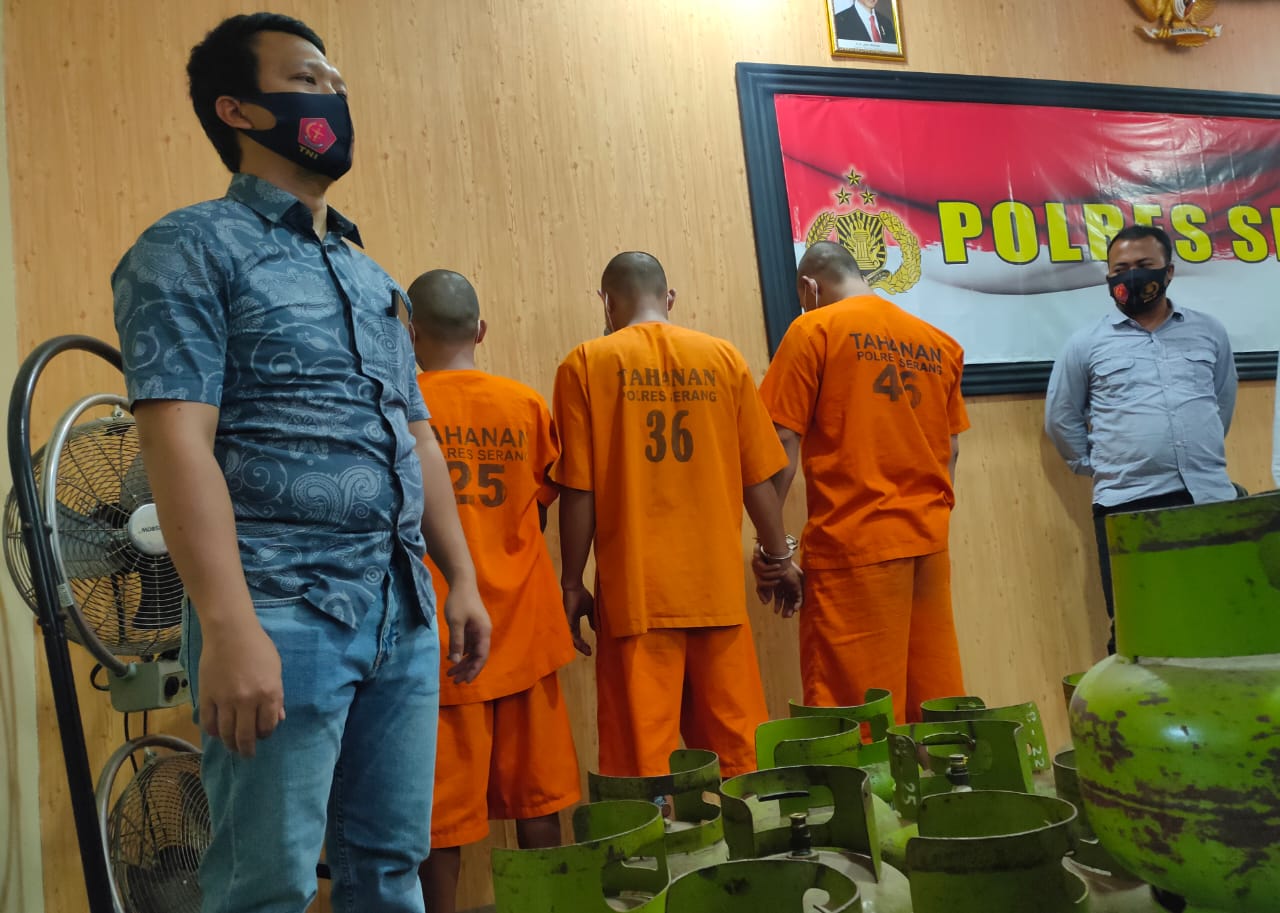 Ketiga tersangka yang berhasil ditangkap IS (43),  warga Desa Teritih, Kecamatan Walantaka, Kota Serang, Suh (35), Desa Cigoong, Kecamatan Walantaka, Kota Serang serta Yu (35), warga Kelurahan Cilaku, Kecamatan Curug, Kota Serang. Dari ketiga pelaku diamankan barang bukti 1 unit kendaraan sebagai sarana kejahatan, 39 tabung gas 3 kg serta 2 batang besi panjang untuk merusak gembok.