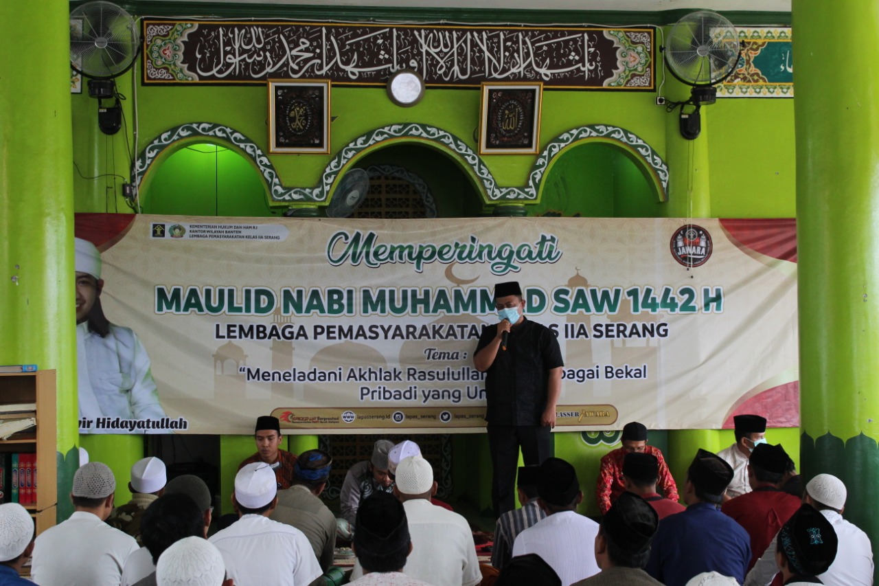 Dalam sambutannya, Kepala Lapas Serang Heri Kusrita, menyampaikan bahwa Dengan adanya acara ini semoga menjadikan ketauladanan Rasullah sebagai motivasi untuk berjuang lebih menggali ilmu agama serta peduli terhadap sesama dalam situasi pandemi sekarang.