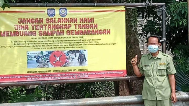 Depok – Lurah Pancoran Mas, Mohammad Soleh menginstruksikan petugas Pelindung Masyarakat (Linmas) di wilayah kerjanya untuk memasang spanduk larangan membuang sampah sembarangan. Pihaknya tidak segan memberikan sanksi bagi warga yang melanggar.