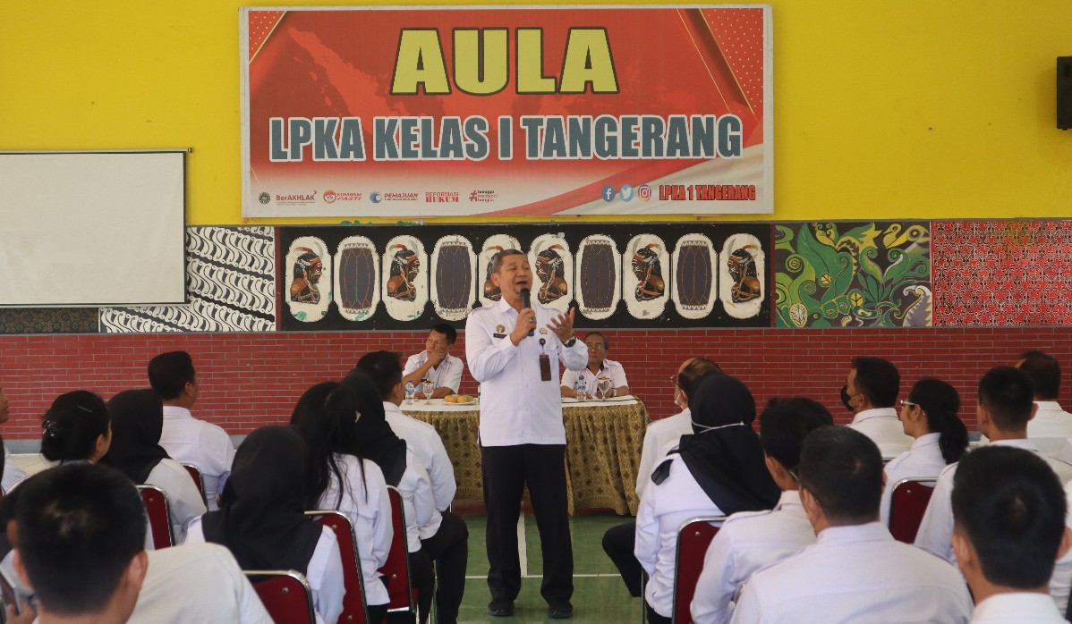 SIBERINDO.CO- Kepala Kantor Wilayah Direktorat Jenderal Pemasyarakatan (Ditjenpas) Banten, Muhammad Ali Syeh Banna, memberikan penguatan dan motivasi kepada seluruh jajaran Lembaga Pembinaan Khusus Anak (LPKA) Kelas I Tangerang, Kamis (6/11).