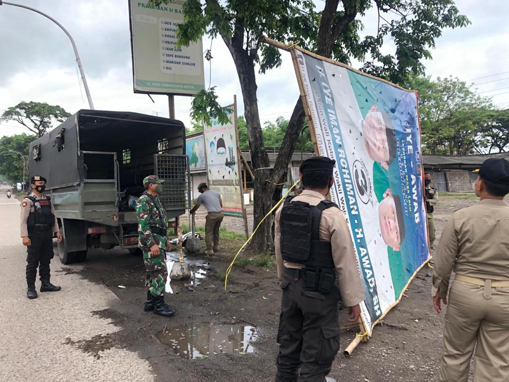 Siberindo.co – Polres Cilegon dan TNI bersama Satpol PP melakukan Pengamanan dan pengawalan Kegiatan penertiban Alat Peraga Kampanye (APK) di masa tenang kampanye Pilkada 2020, yang dilaksanakan oleh Tim Bawaslu Kota Cilegon di sepanjang jalur Protokol Kota Cilegon dan Masing – masing Panwascam Minggu (6/12/2020).