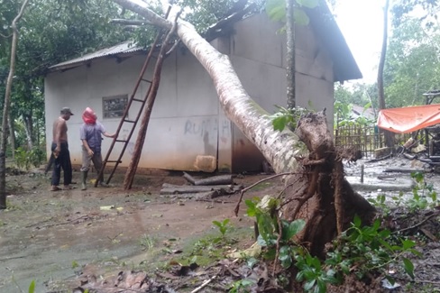 Namun tidak ada korban jiwa dalam kejadian tersebut, namun atap rumah dapur rusak berat akibat tertimpa pohon yang tumbang.” Kerugian ditaksir mencapai Rp. 5 Juta.” Terang Dede