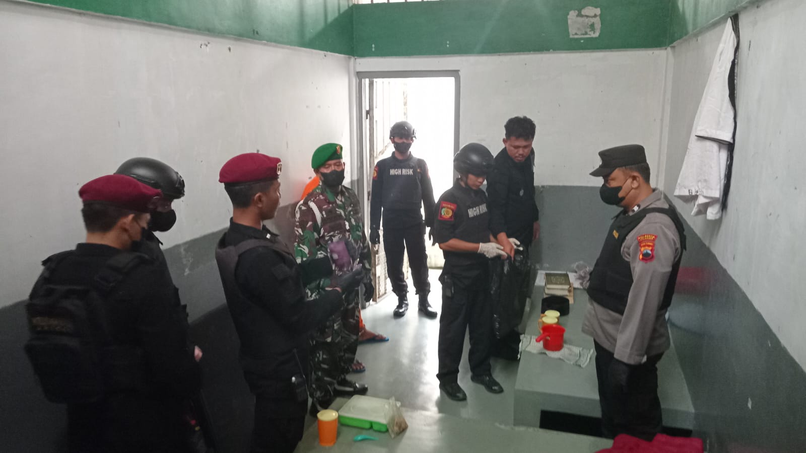 SIBERINDO.CO – Kalapas Pasir Putih Nusakambangan, Enjat Lukmanul Hakim undang Polsek Nusakambangan dan Kodim Wijayakusuma Cilacap dalam rangka penggeledahan kamar hunian Narapidana Teroris. Sinergi yang semakin erat antara Lapas Pasir Putih bersama TNI dan POLRI terjalin dengan kegiatan razia bersama yang diadakan sore hari ini.