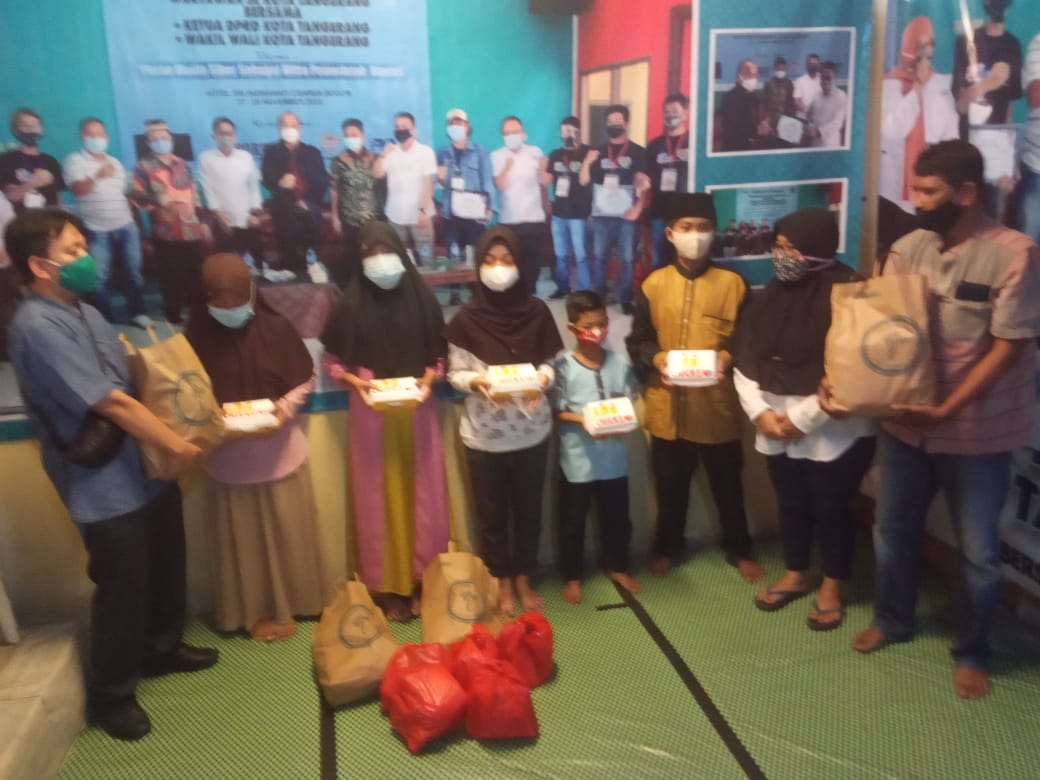 Kota Tangerang – Persatuan Wartawan Indonesia (PWI) Kota Tangerang bersama Alfamart membagikan puluhan paket sembako kepada anak yatim di Sekber PWI – SMSI Kota Tangerang, Jumat (7/5/2021).