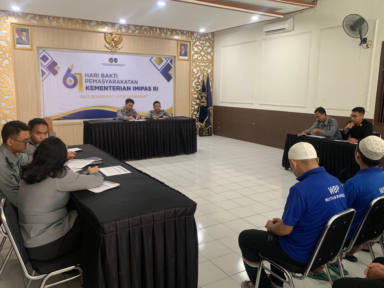 Pasuruan – Rutan Kelas IIB Bangil melaksanakan Sidang Tim Pengamat Pemasyarakatan (TPP) bagi narapidana pada Selasa (06/05) di Aula Serbaguna. Kegiatan ini bertujuan untuk mengevaluasi perkembangan perilaku, kepatuhan, dan kesiapan warga binaan dalam mengikuti program pembinaan lebih lanjut. Sidang TPP merupakan agenda rutin yang juga menjadi tolak ukur bagi narapidana untuk memperoleh hak integrasi seperti pembebasan bersyarat, cuti menjelang bebas, dan remisi.