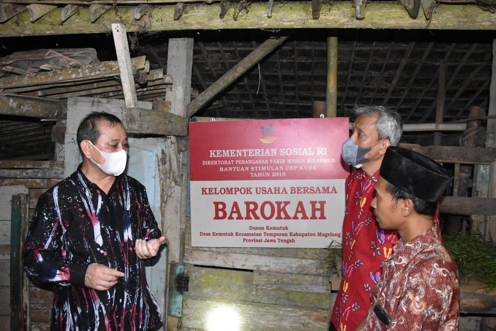 MAGELANG – Direktur Jenderal Penanganan Fakir Miskin (Dirjen PFM), Asep Sasa Purnama mengunjungi KUBE Barokah di Desa Kemutuk Kabupaten Magelang (5/6/2021). KUBE Barokah mendapatkan bantuan usaha dari Kementerian Sosial RI pada tahun 2019 dalam bentuk usaha peternakan sapi.