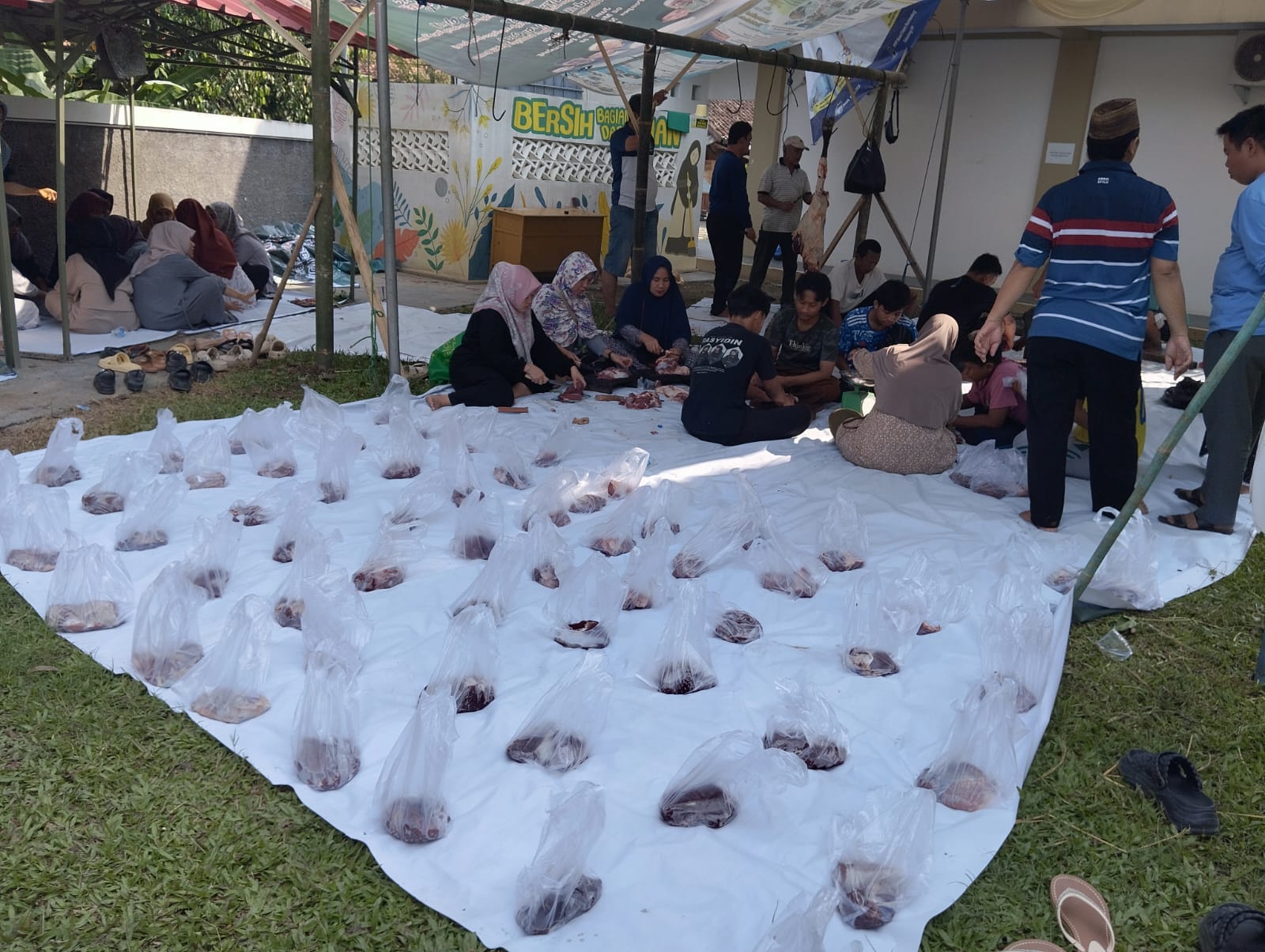 SIBERINDO.CO -Pondok Pesantren(Ponpes) Nurul Falah Tebu Ireng, Kampung Pasir Malang, Desa Kadu Agung Timur, Kecamatan Cibadak, Kabupaten Lebak, melakukan pemotongan sebanyak 6 ekor sapi dan 11 ekor kambing di hari Raya Idul Adha 1446 Hijriah.