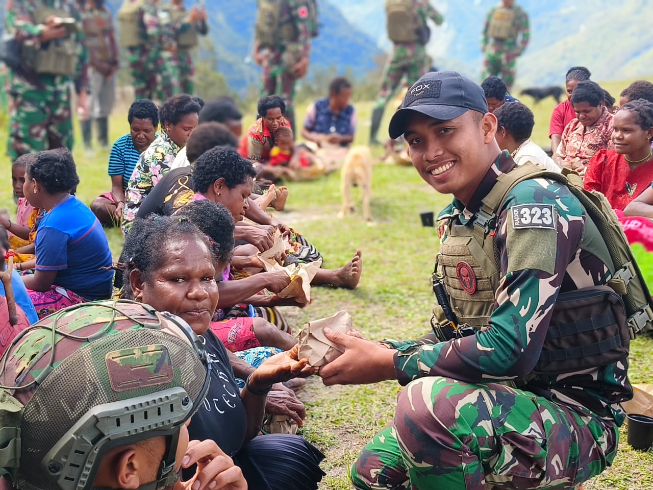 Beoga Puncak, – Satuan Tugas Batalyon Infanteri (Satgas Yonif) Raider 323/Buaya Putih Kostrad, salah satu Satuan Jajaran Komando Operasi HABEMA di Papua, tengah melaksanakan tugas Operasi Pengamanan Perbatasan Mobil RI-PNG, di wilayah Kabupaten Puncak, Provinsi Papua Tengah. Pada hari Jumat (6/9/2024), Satgas Yonif 323 Kostrad, khususnya Pos Dambet pimpinan Lettu Inf Tria Ristidiyanto, melaksanakan kegiatan Komunikasi Sosial (Komsos) berupa makan siang bersama Warga Kampung Dambet, Distrik Beoga.