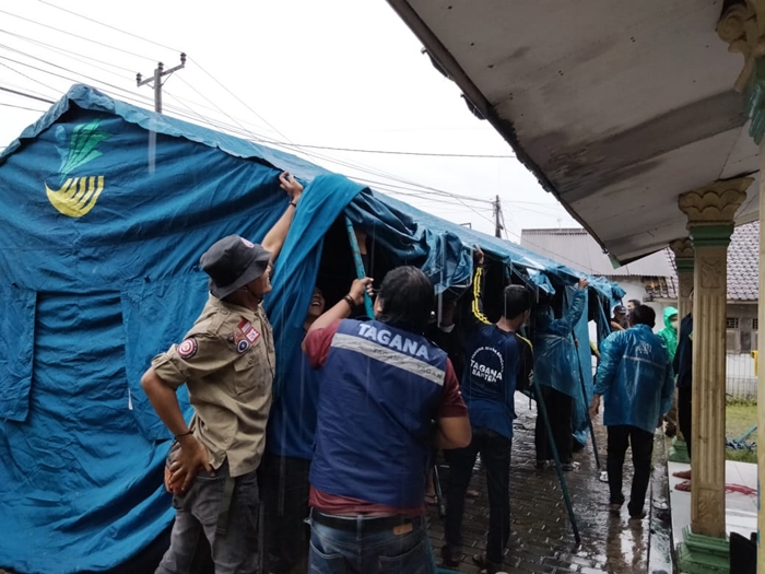 Siberindo.co– Relawan Taruna Siaga Bencana (Tagana) Lebak terjun membantu warga korban banjir, yang melanda beberapa wilayah Kecamatan di Kabupaten Lebak, salah satunya di Kecamatan Rangkasbitung, Kabupaten Lebak sejak Minggu kemarin (06/12/2020). Banjir terjadi akibat luapan sungai Ciberang dan Ciujung menggenangi wilayah yang dilewati aliran sungai akibat dari intensitas curah hujan yang cukup tinggi.