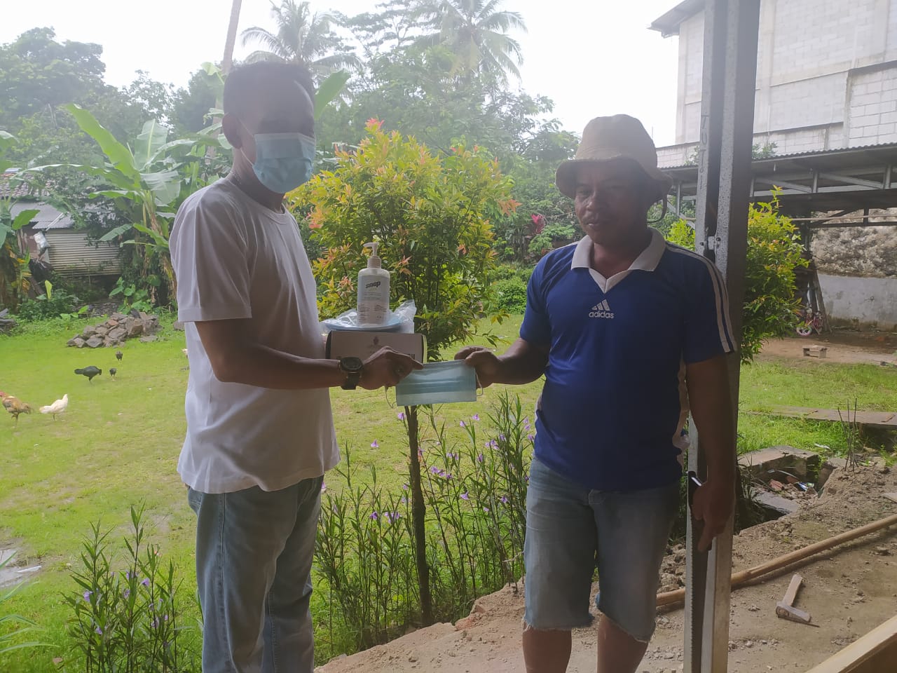 Kegiatan pembagian masker dan hand sanitizer kepada warga itu dilakukan di beberapa tempat, salah satunya di Desa Selaraja, Kecamatan Warunggunung, Kabupaten Lebak, Provinsi Banten, Selasa (07/12/2021)
