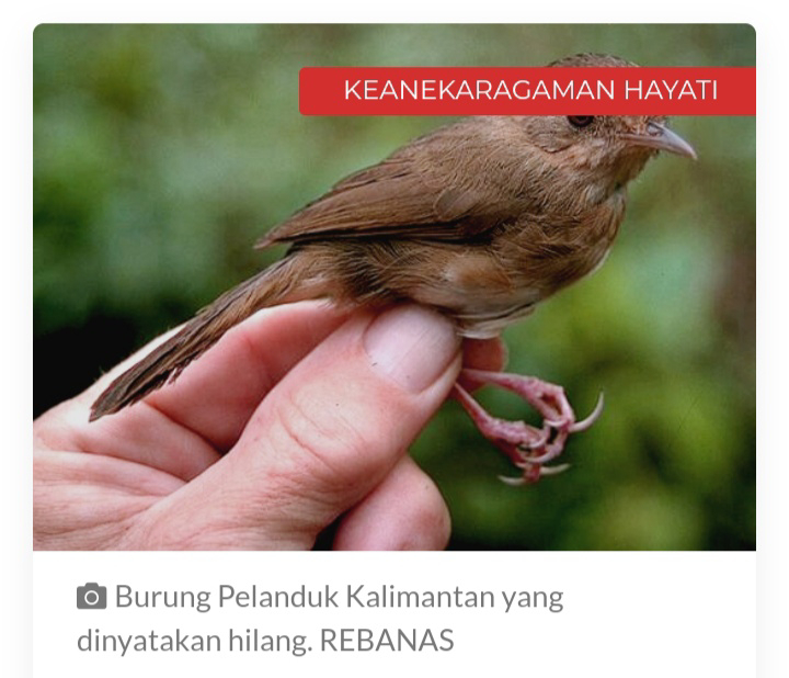 Sebuah artikel menarik diturunkan oleh Oriental Bird Club pada 25 Februari 2021. Judulnya pun sangat menggoda, “Teka-Teki Burung yang Hilang Sejak 172 Tahun Telah Ditemukan di Hutan Hujan Indonesia Kalimantan”.