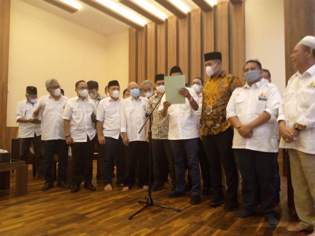 Diakhir sambutannya, Jayabaya didampingi jajaran kepengurusan membacakan pernyataan dukungan kepada Arsjad Rasjid.
