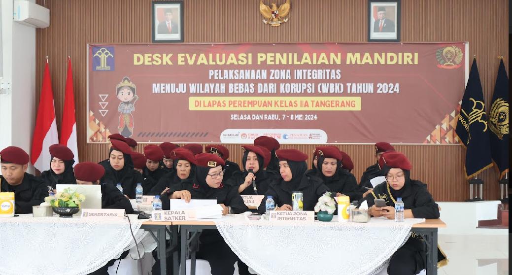 Tangerang, (07/05) – Lapas Perempuan Kelas IIA Tangerang mengikuti Desk Evaluasi Pembangunan Zona Integritas menuju Wilayah Bebas dari Korupsi (WBK) bersama Tim Penilai Intern (TPI) dari Inspektorat Jenderal Kementerian Hukum dan HAM