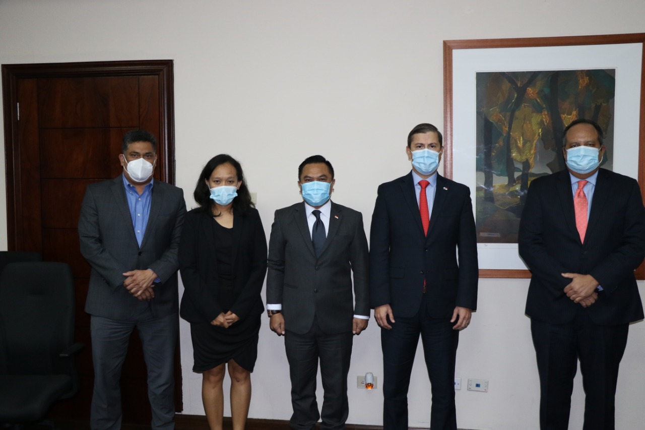 Panama City, Panama – Duta Besar RI untuk Panama, Sukmo Harsono sampaikan mengenai peluang bisnis, serta potensi peningkatan hubungan dagang dan investasi Indonesia – Panama saat melakukan kunjungan kehormatan kepada  kepada Wakil Menteri Perindustrian dan Perdagangan (Wamenperindag) Panama, Juan Carlos Sosa (03/06/2021).