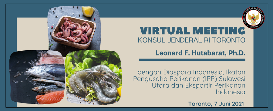 Toronto, Kanada – Dalam upaya meningkatkan ekspor produk seafood Indonesia ke Kanada, KJRI Toronto menyelenggarakan 2 pertemuan terpisah dengan Diaspora Indonesia, Ikatan Pengusaha Perikanan (IPP) Sulawesi Utara dan sejumlah eksportir perikanan Indonesia (07/06/2021).