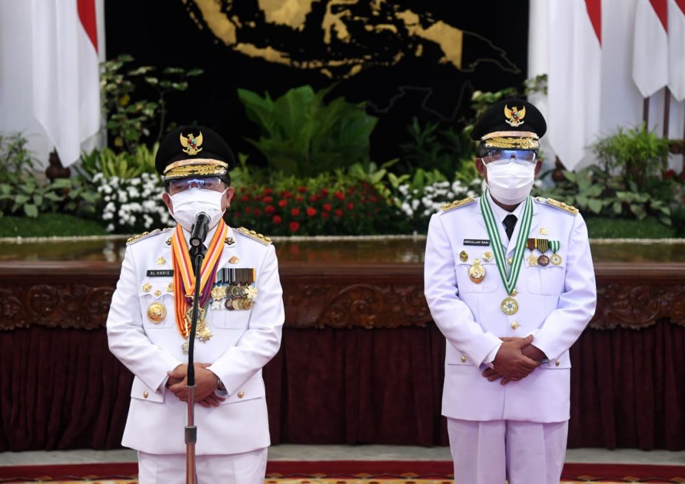 JAKARTA – Presiden Joko Widodo melantik Al Haris dan Abdullah Sani sebagai Gubernur dan Wakil Gubernur Jambi periode 2021-2024.