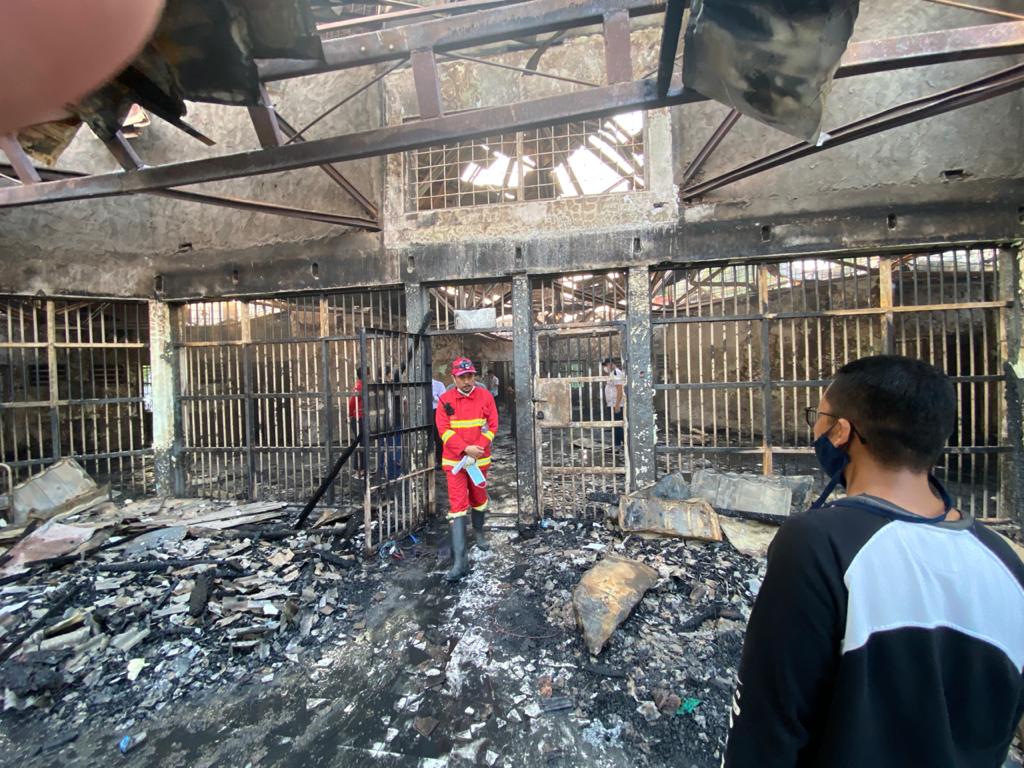 Menkumham Mengatakan bahwa hasil penelusuran saat ini, insiden kebakaran disebabkan oleh konsleting listrik. (Dede).