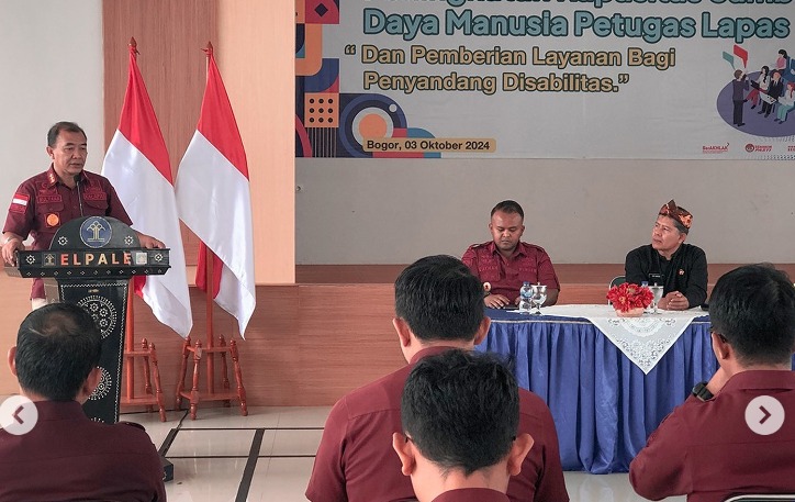 Lanjut, Kalapas mengungkapkan, kegiatan ini dilaksanakan dalam rangka Peningkatan Kapasitas Sumber Daya Manusia Petugas Lapas Kelas IIA Bogor dan Pemberian Layanan Bagi Penyandang Disabilitas. Sehingga layanan pemasyarakatan di Lapas Kelas IIA Bogor menjadi semakin mudah terjangkau dari segala lini masyarakat, terutama pengunjung disabilitas.