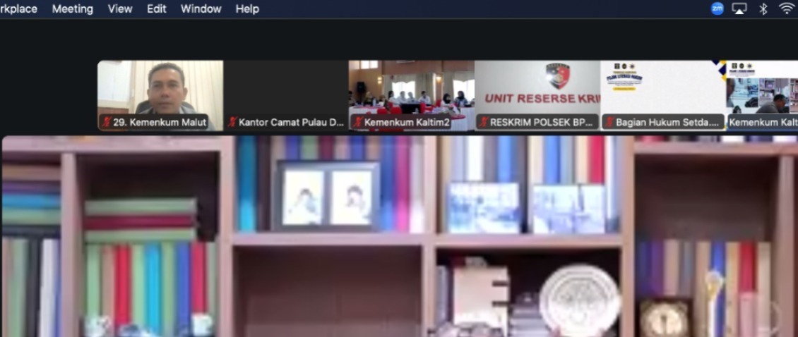 Ternate – Kepala Kantor Wilayah (Kanwil) Kementerian Hukum (Kemenkum) Maluku Utara (Malut), Budi Argap Situngkir bersama jajaran Divisi Pelayanan Hukum dan Pembinaan Hukum mengikuti kegiatan “Pembukaan Training of Facilitator Implementasi KUHP Angkatan XI Tahun Anggaran 2025” secara daring bertempat di ruang rapat lantai II Kanwil, Senin (08/12/2025).